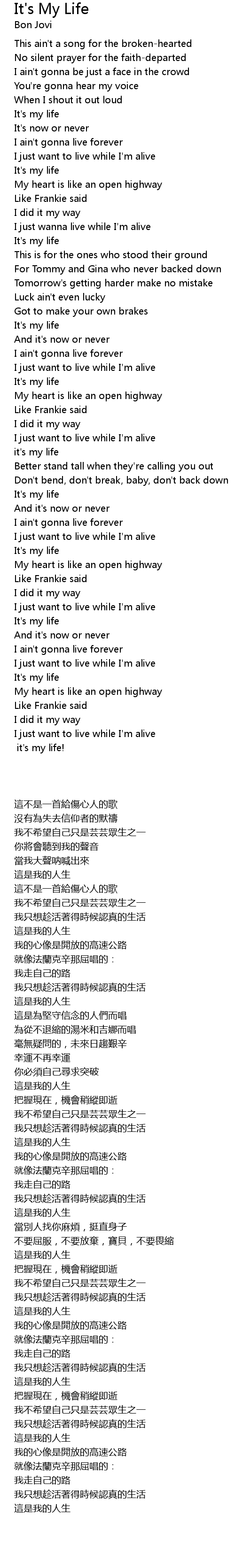it's my life |