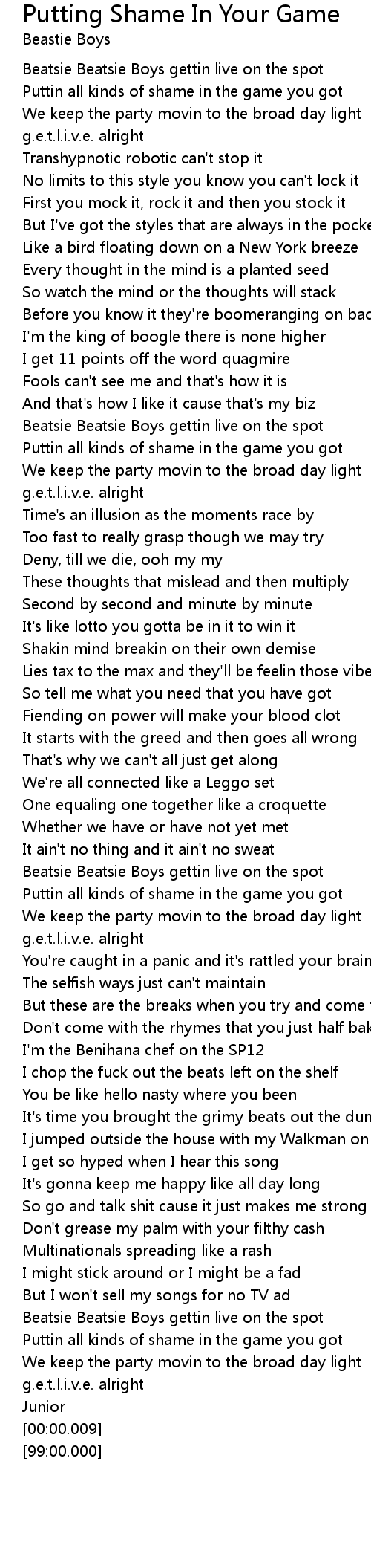 Puttin all kinds of shame in the game you got |