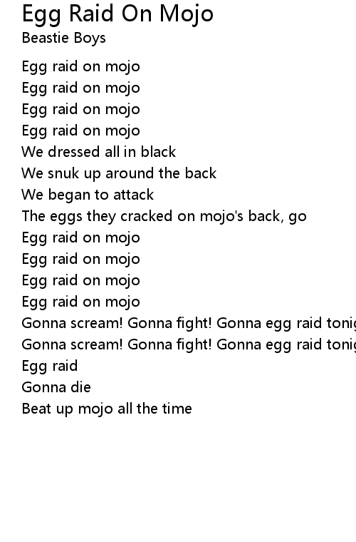 | Egg raid on mojo | |