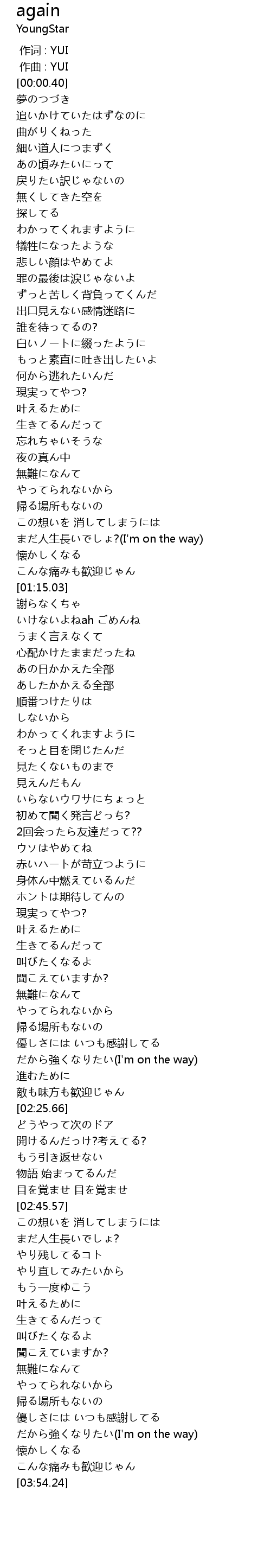 | [00:00.020] | zuo qu : YUI |