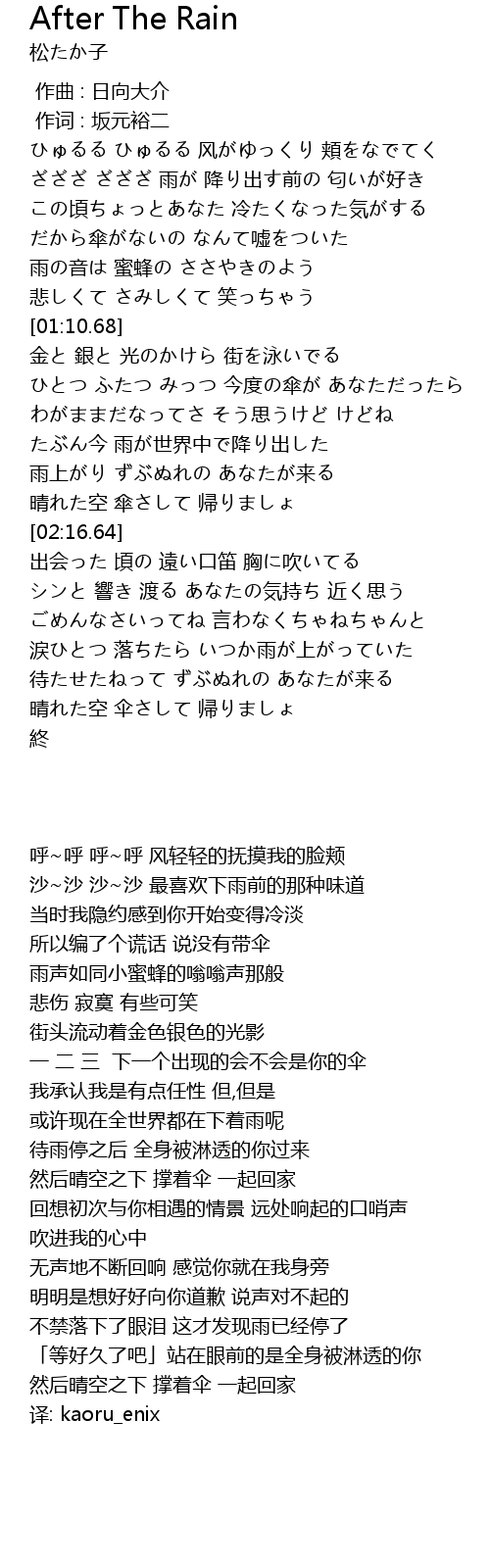 | [02:58.48] | 涙ひとつ 落ちたら いつか雨が上がっていた |