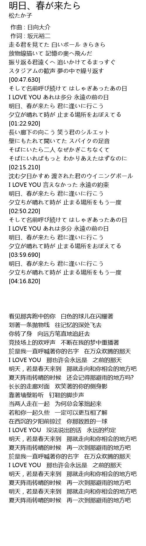| [02:32.900] | 明日、春が来たら 君に逢いに行こう |