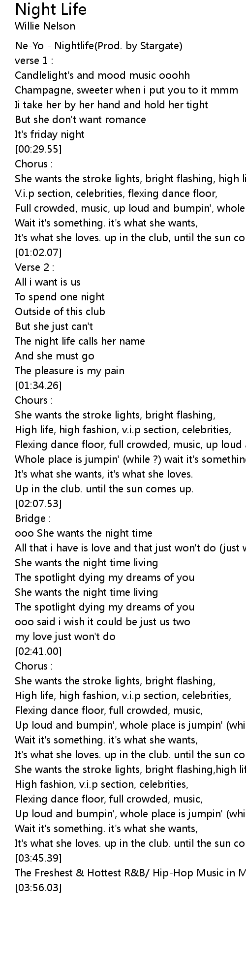 She wants the stroke lights, bright flashing, high life, high fashion, |