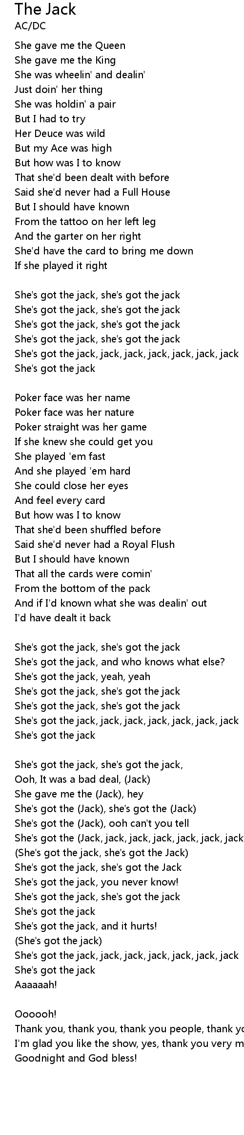 She's got the jack, jack, jack, jack, jack, jack, jack |