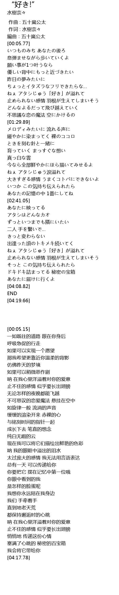 | [03:31.45] | ねぇ アタシじゅう「好き」が溢れて |