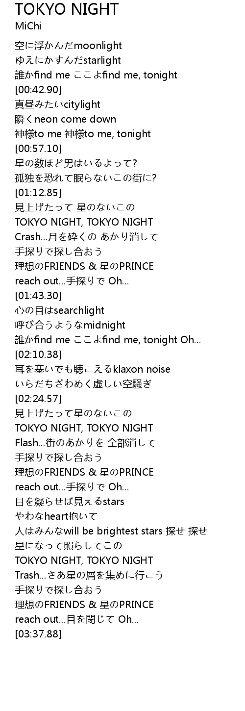 | [01:17.19] | TOKYO NIGHT, TOKYO NIGHT |