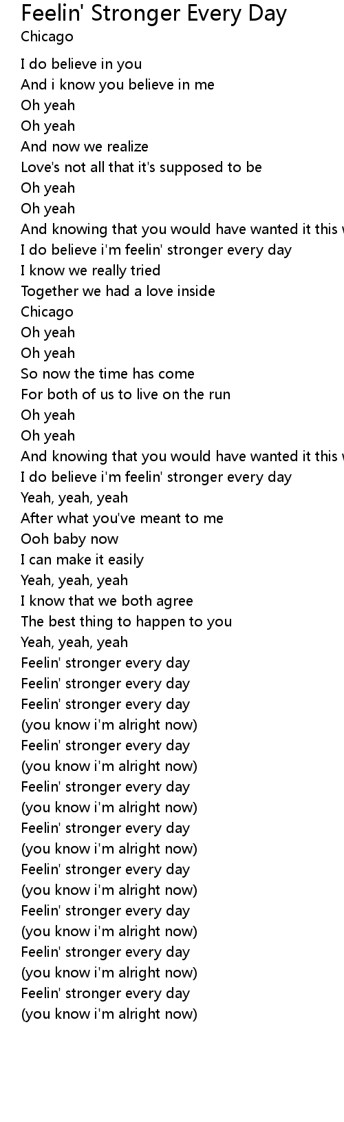 I do believe i'm feelin' stronger every day |