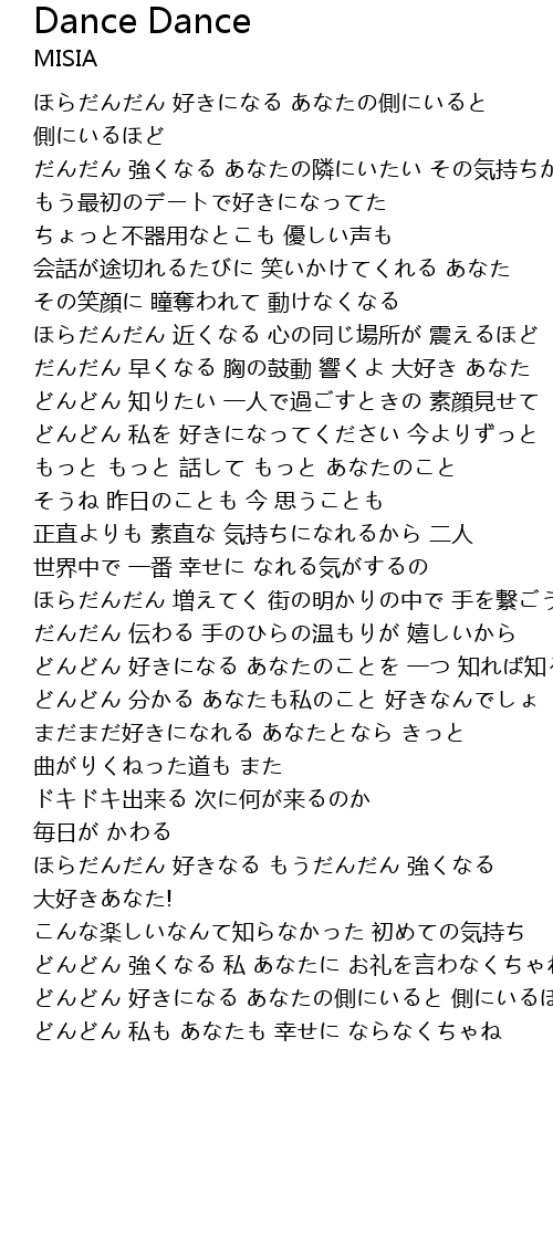 | だんだん 早くなる 胸の鼓動 響くよ 大好き あなた | |