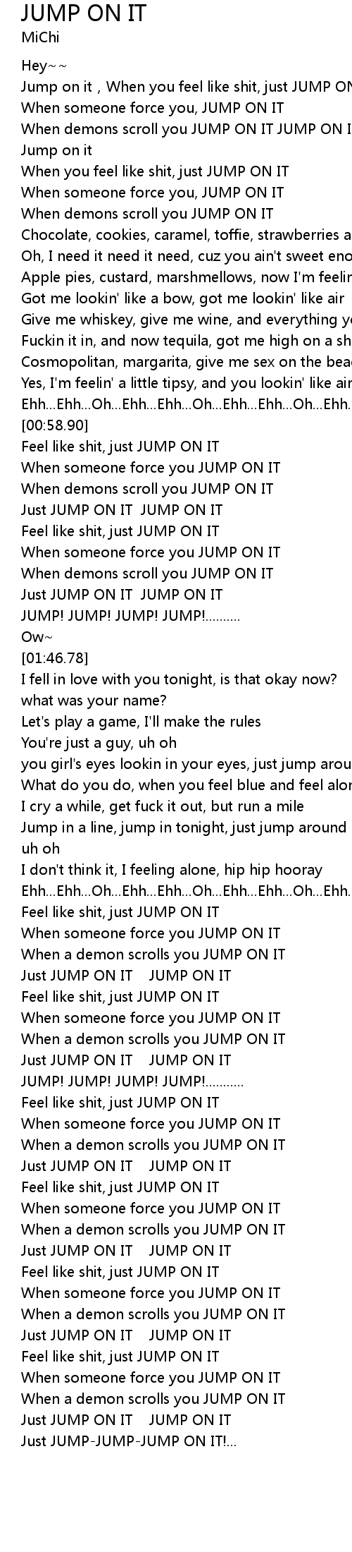 | [01:18.92] | Just JUMP ON IT JUMP ON IT |