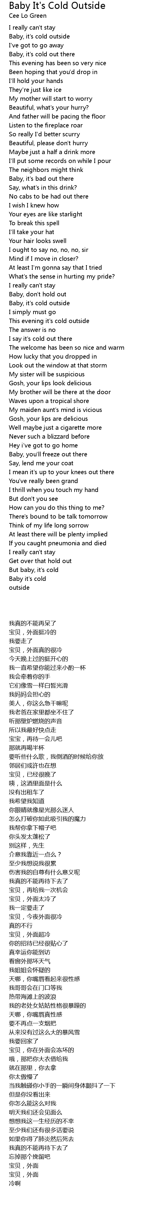 But baby, it's cold |