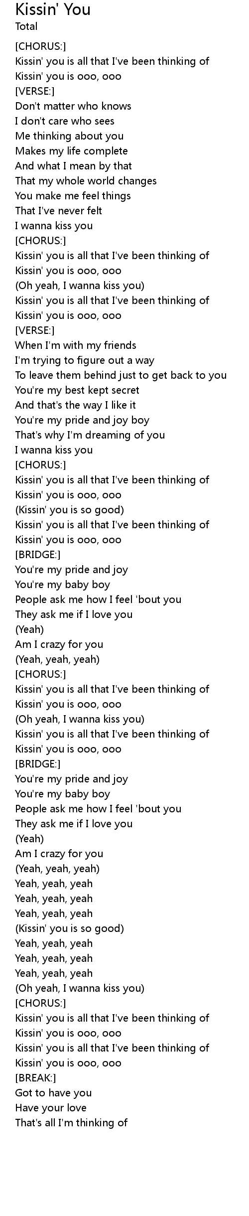 | Kissin' you is all that I've been thinking of | |