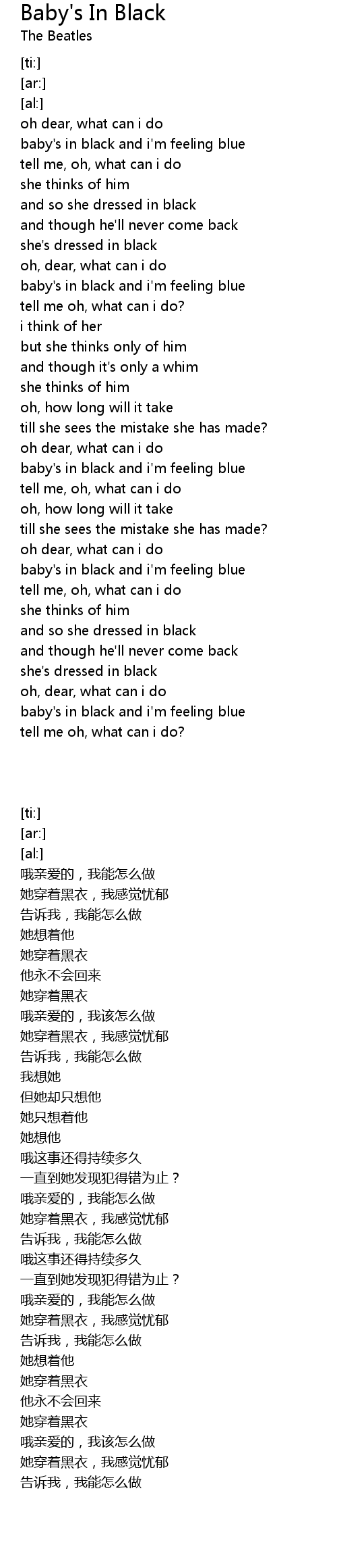 baby's in black and i'm feeling blue |