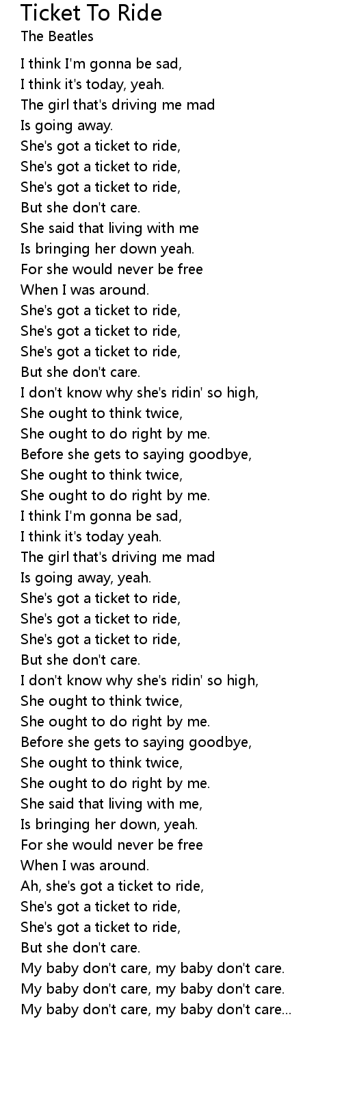 Ah, she's got a ticket to ride, |