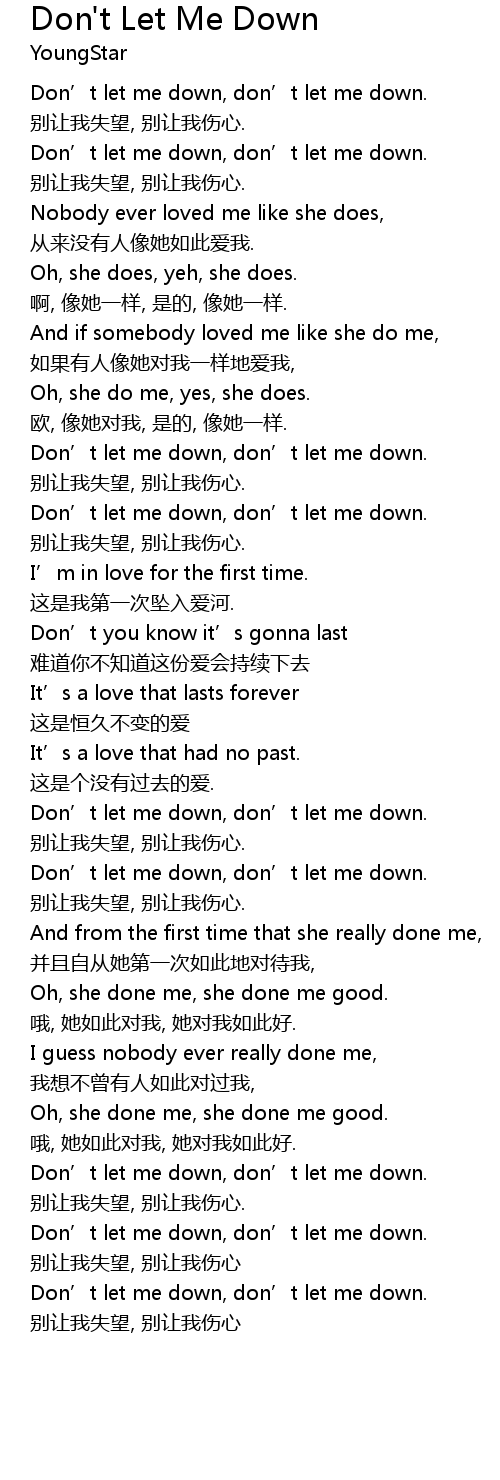 | Don' t let me down, don' t let me down. | |