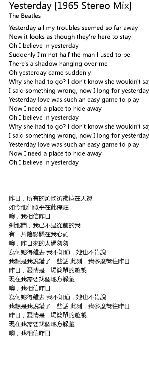 Oh yesterday came suddenly |