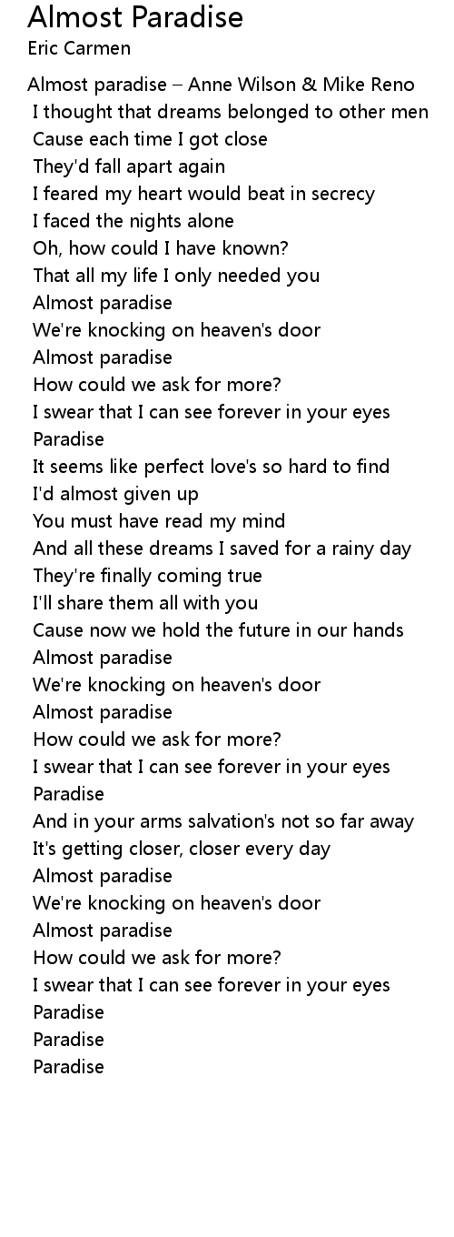 | Song | Almost Paradise |