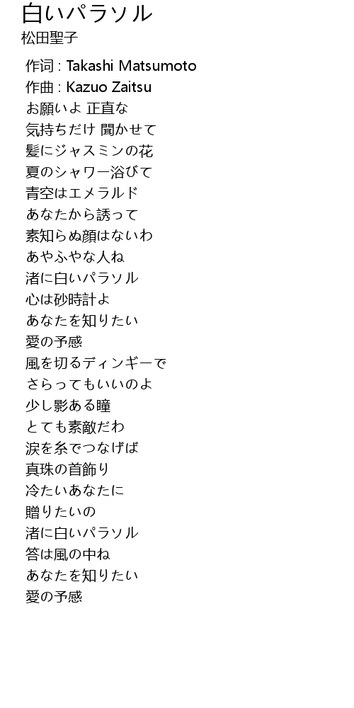 | [00:00.000] | zuò cí : Takashi Matsumoto |