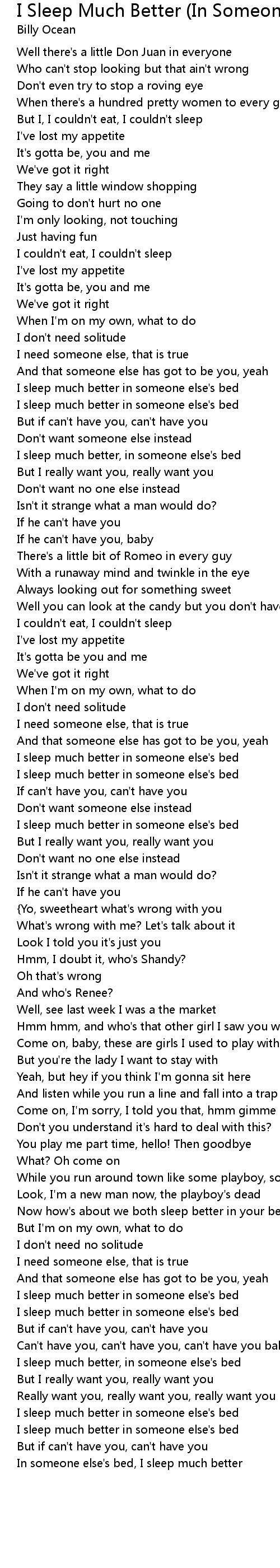 In someone else's bed, I sleep much better |