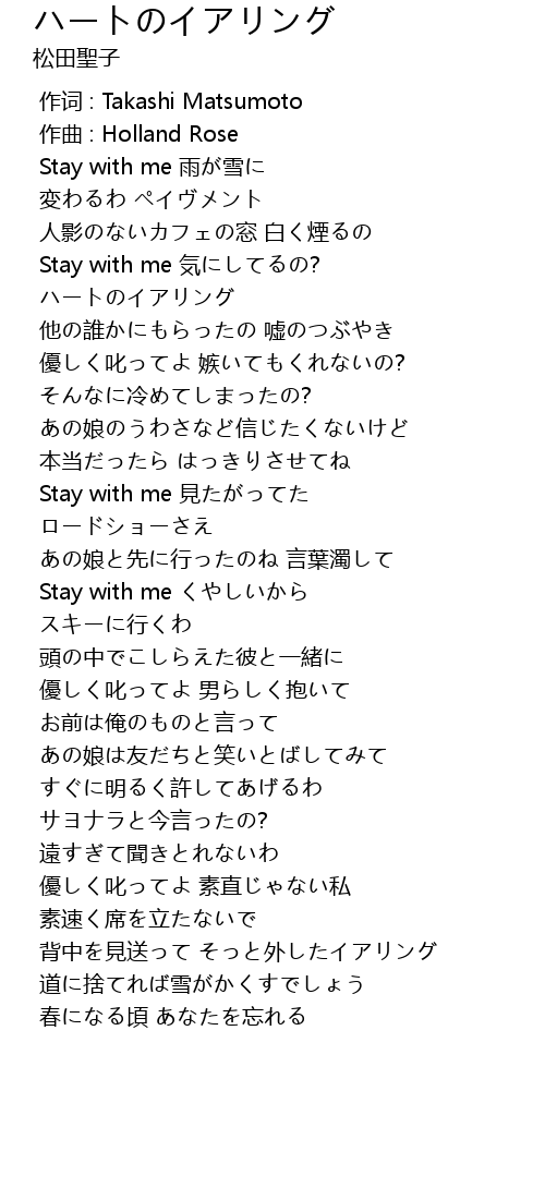 | [03:21.983] | 背中を見送って そっと外したイアリング |