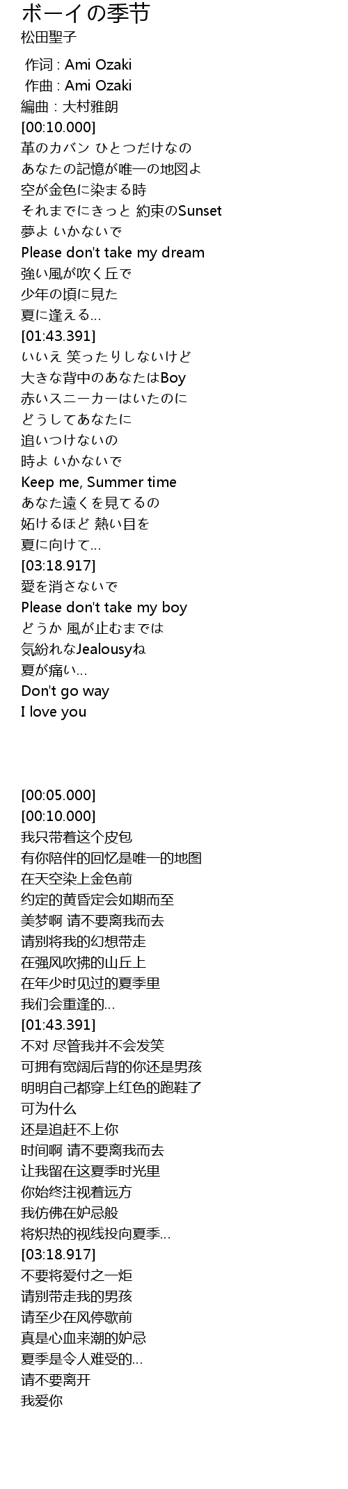 | [00:01.000] | zuo qu : Ami Ozaki |