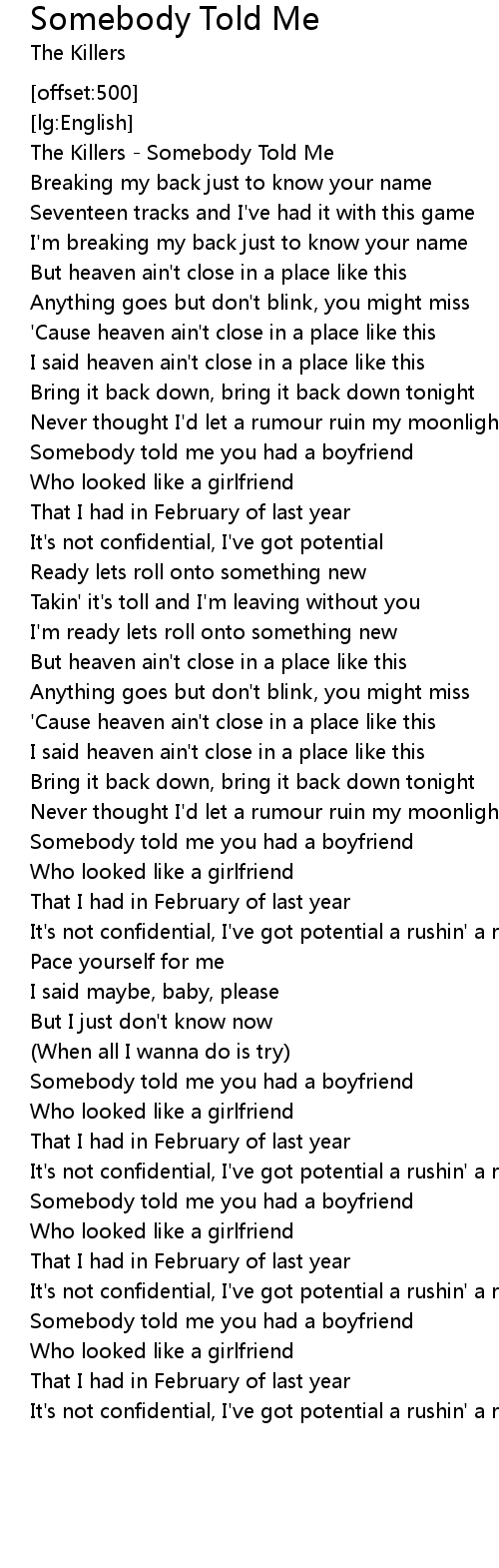 Somebody told me you had a boyfriend |