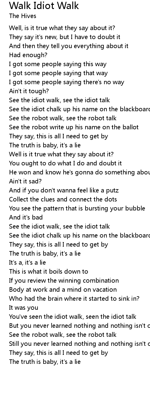 You've seen the idiot walk, seen the idiot talk |