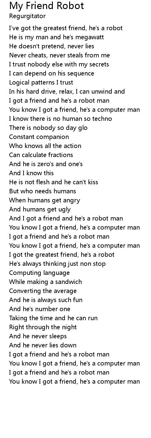 And I got a friend and he's a robot man |