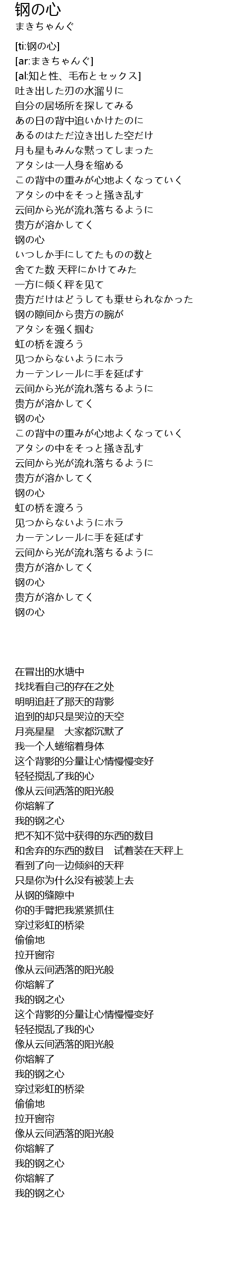 | [04:37.000] | 钢の心 |