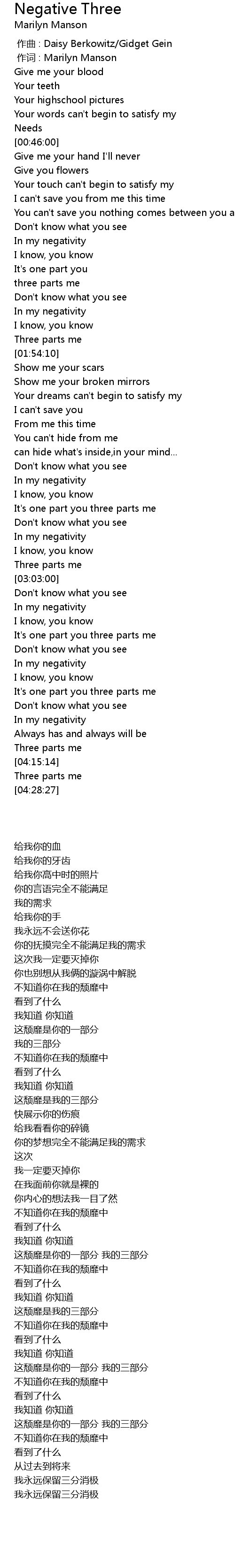 | [00:01.00] | zuò cí : Marilyn Manson |