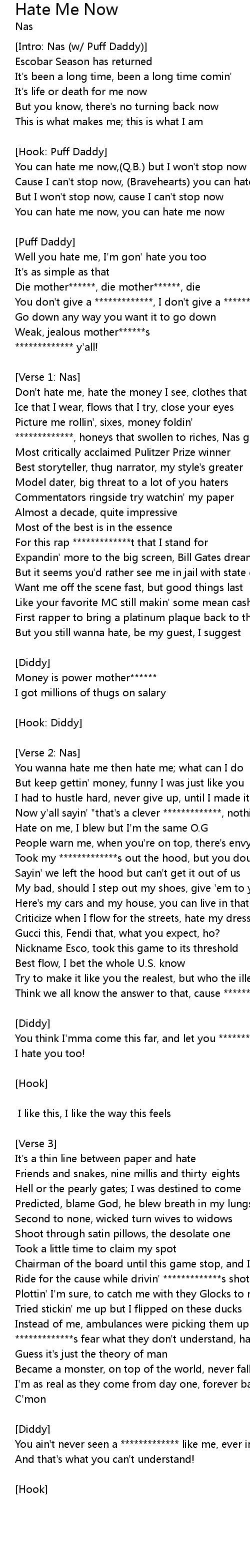 You can hate me now,(Q.B.) but I won't stop now (real *************s) |