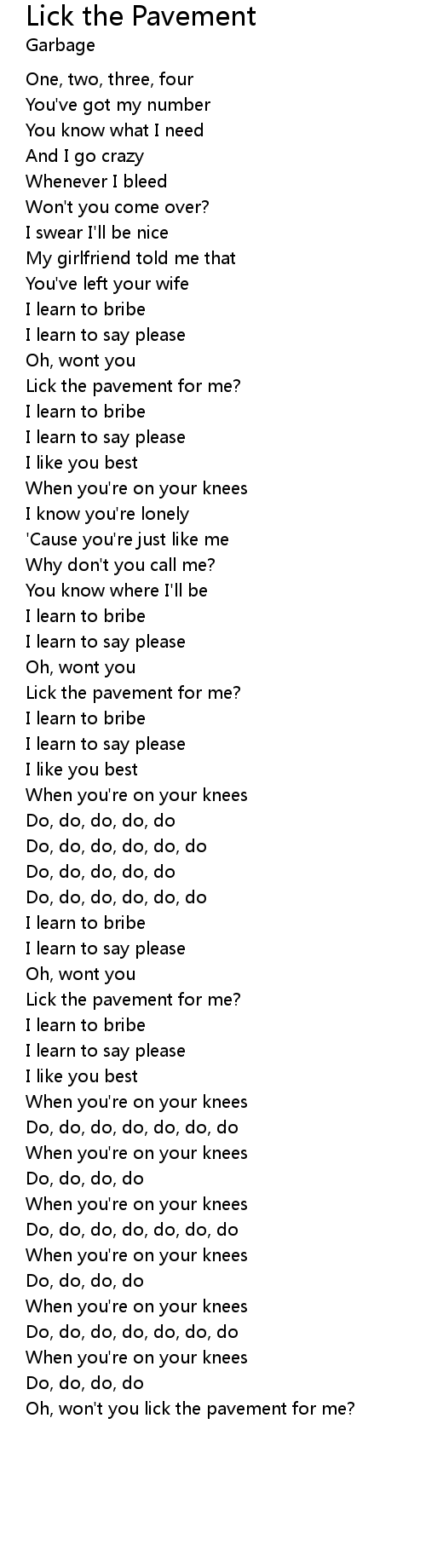 | Oh, won't you lick the pavement for me? |