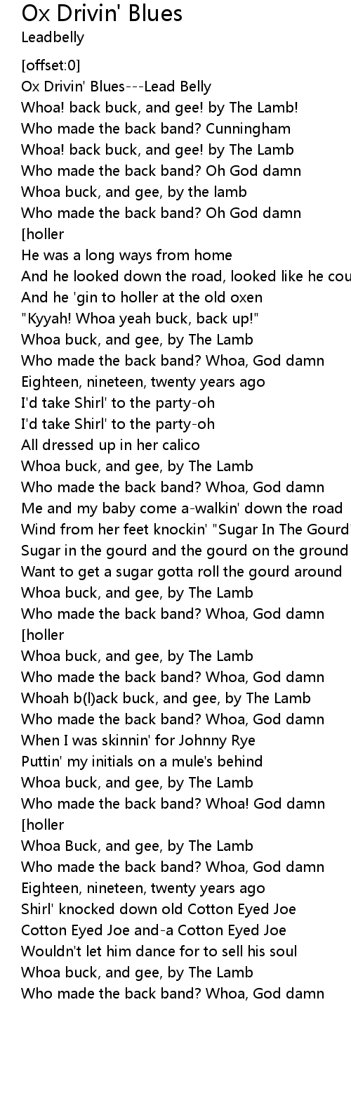 Ox Drivin' Blues---Lead Belly |