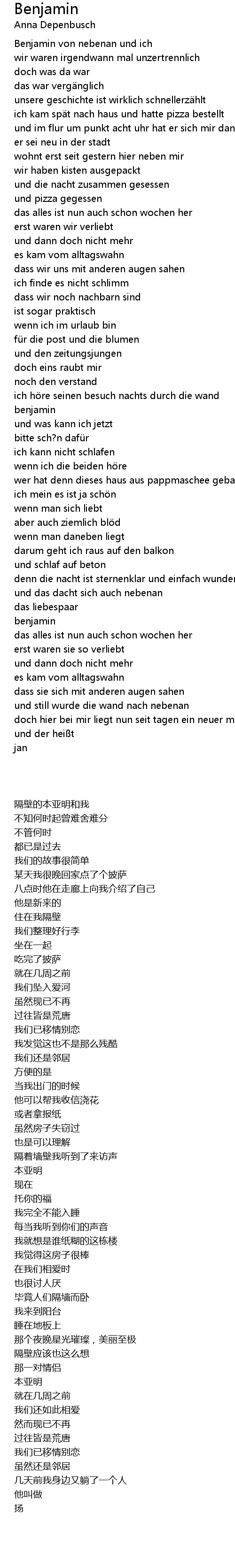 | [00:14.65] | Benjamin von nebenan und ich |