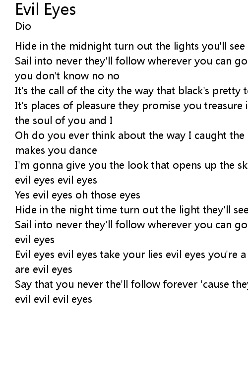 I'm gonna give you the look that opens up the skies I've got evil eyes evil eyes evil eyes evil eyes |