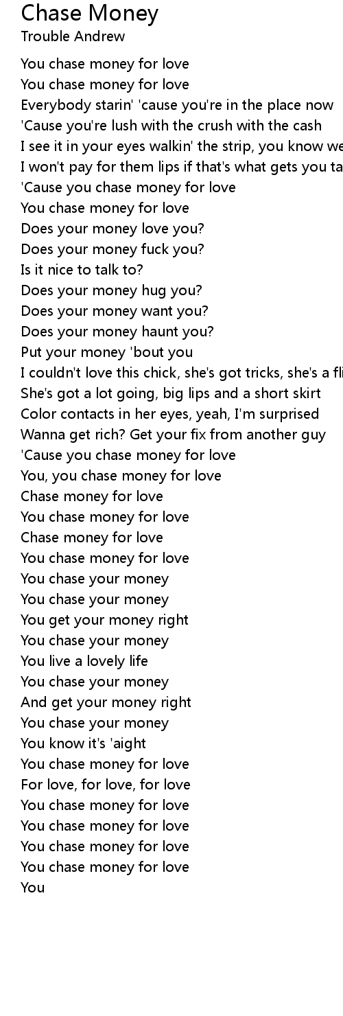 You, you chase money for love |