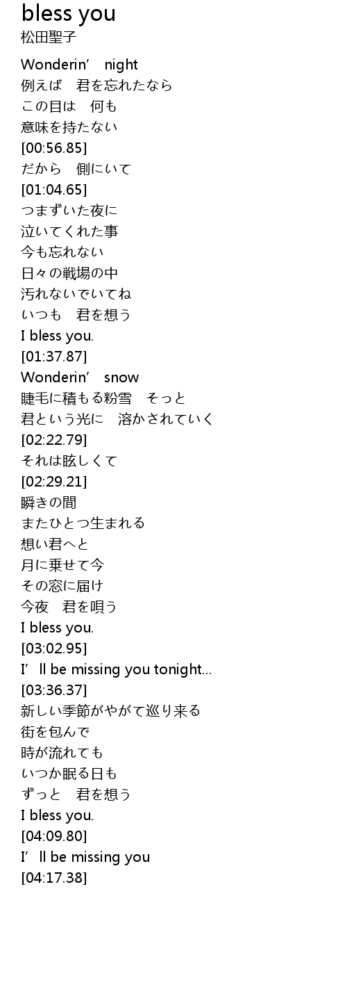 | [01:34.89] | I bless you. |
