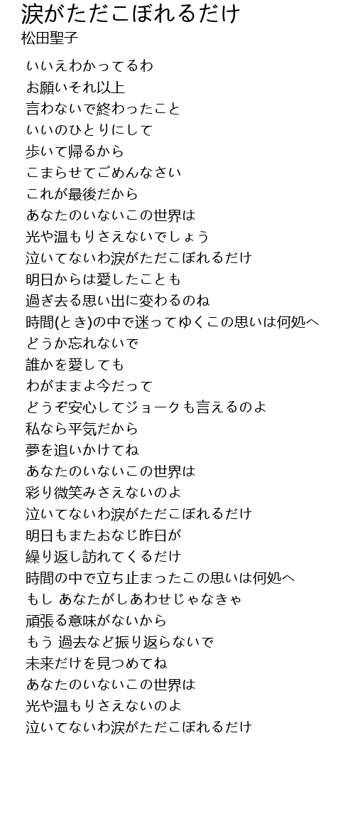 | [01:11.303] | 泣いてないわ涙がただこぼれるだけ |