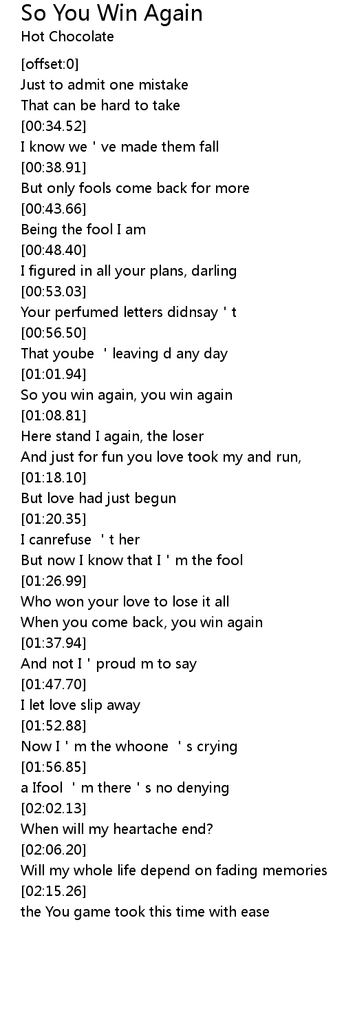| [01:04.69] | So you win again, you win again |