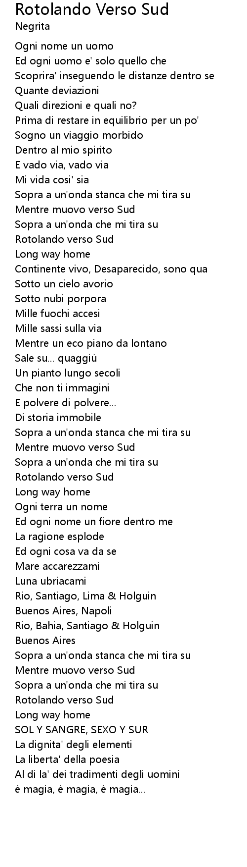 | Rotolando verso Sud | |