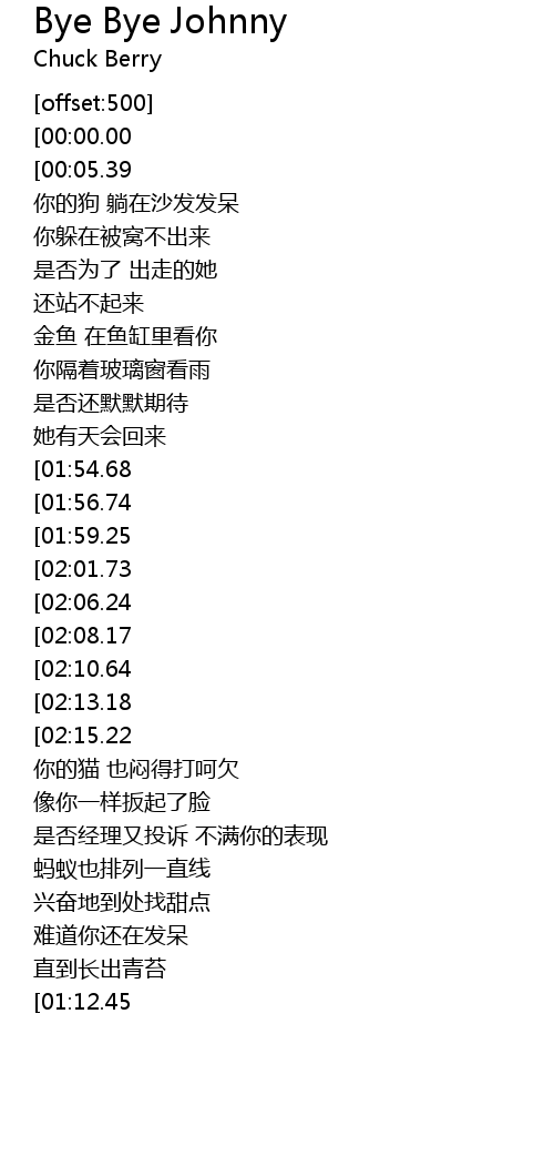 | [01:30.38] | 你的猫 也闷得打呵欠 |