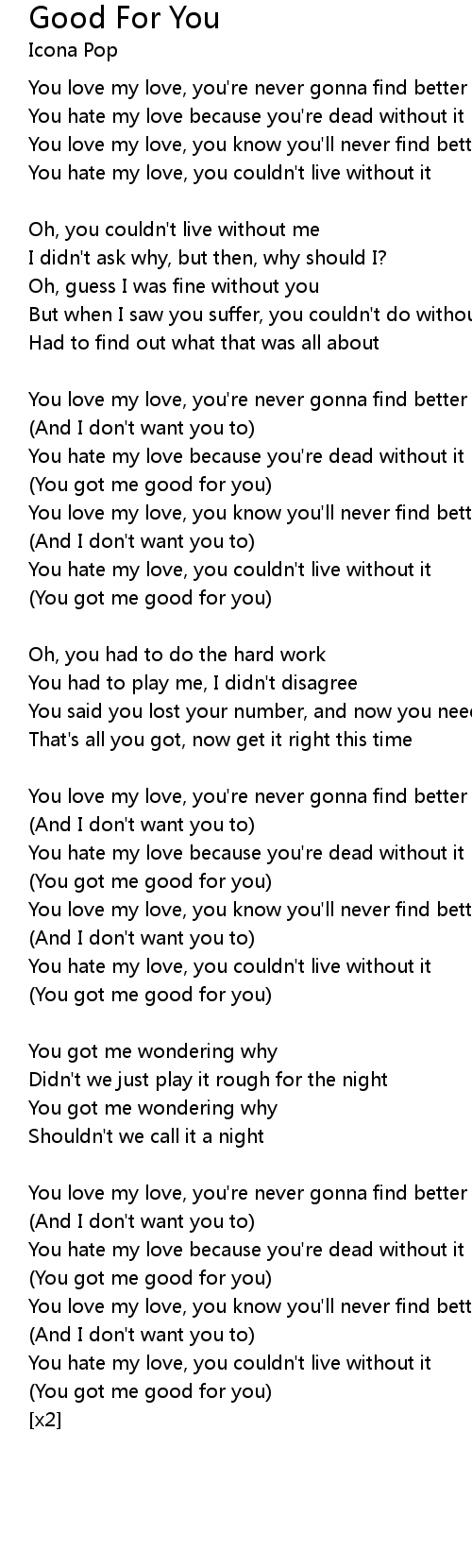 | You love my love, you know you'll never find better love | |
