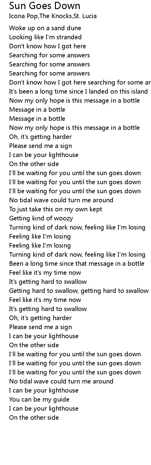 | [01:19.16] | I'll be waiting for you until the sun goes down |