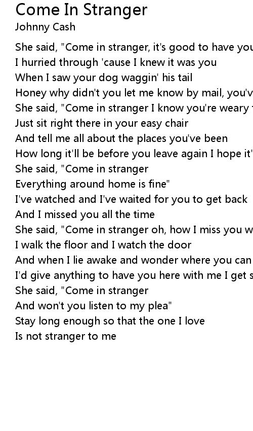 She said, "Come in stranger oh, how I miss you when you're gone" |