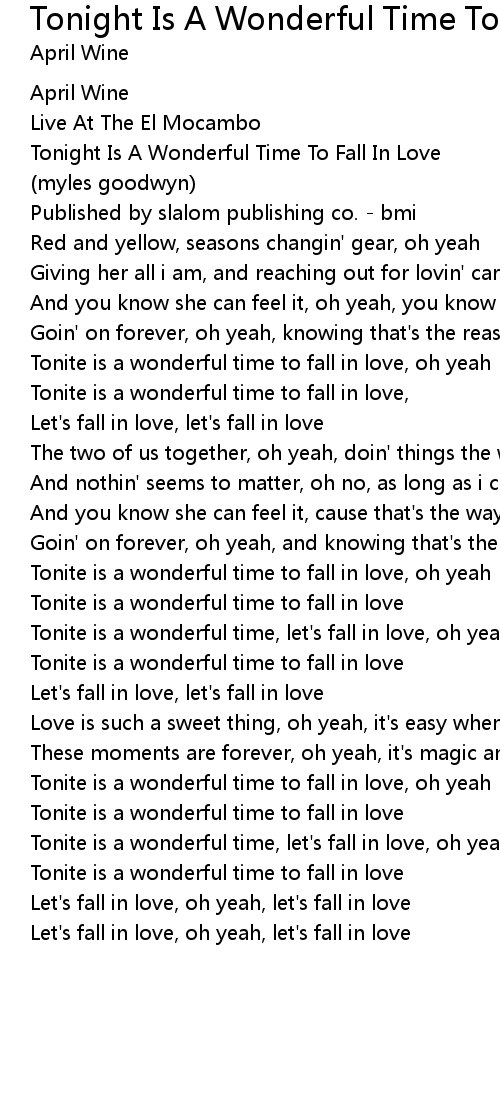 Tonite is a wonderful time, let's fall in love, oh yeah |