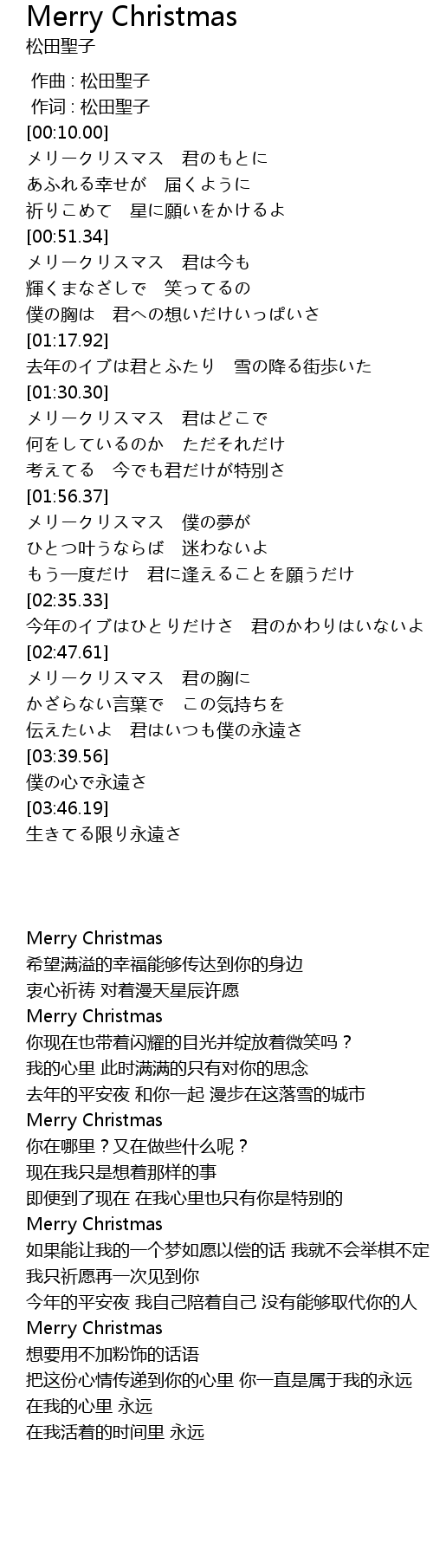 | [03:15.43] | メリークリスマス 君の胸に |