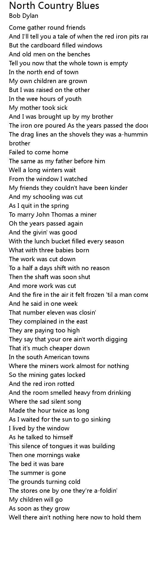 And I'll tell you a tale of when the red iron pits ran plenty |