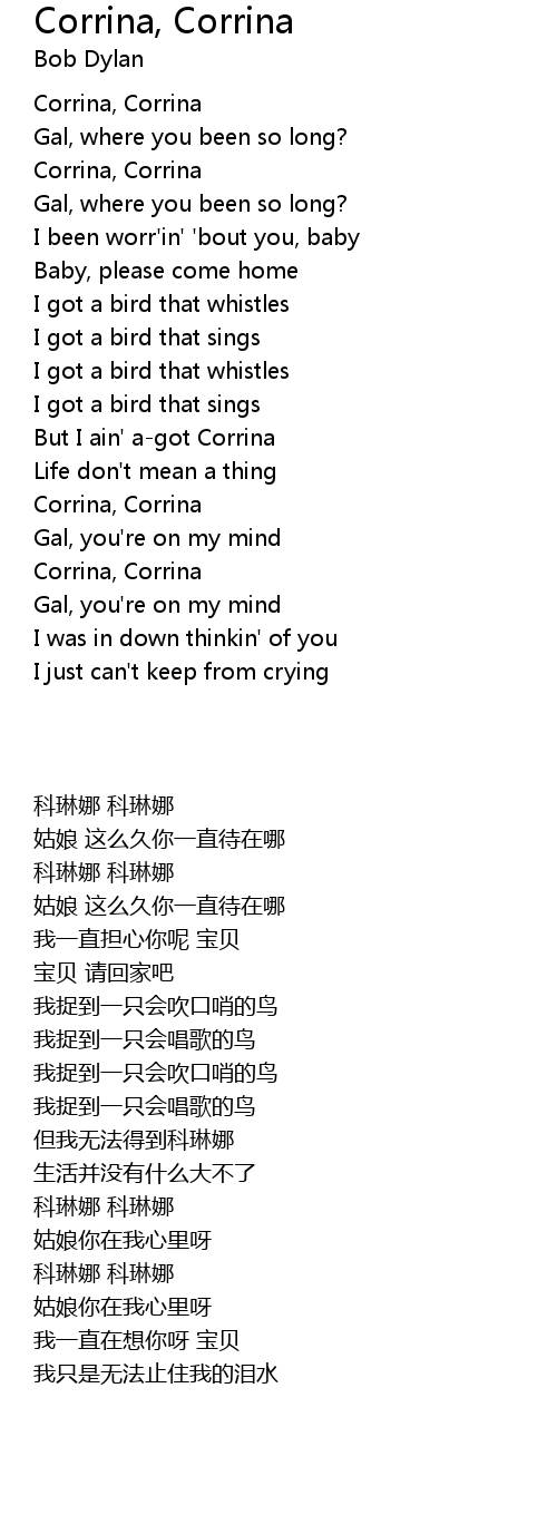 But I ain' a-got Corrina |