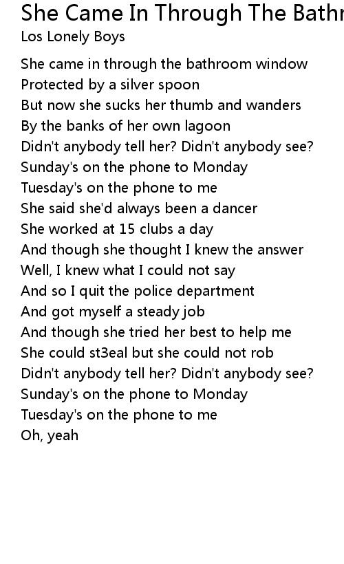 She came in through the bathroom window |