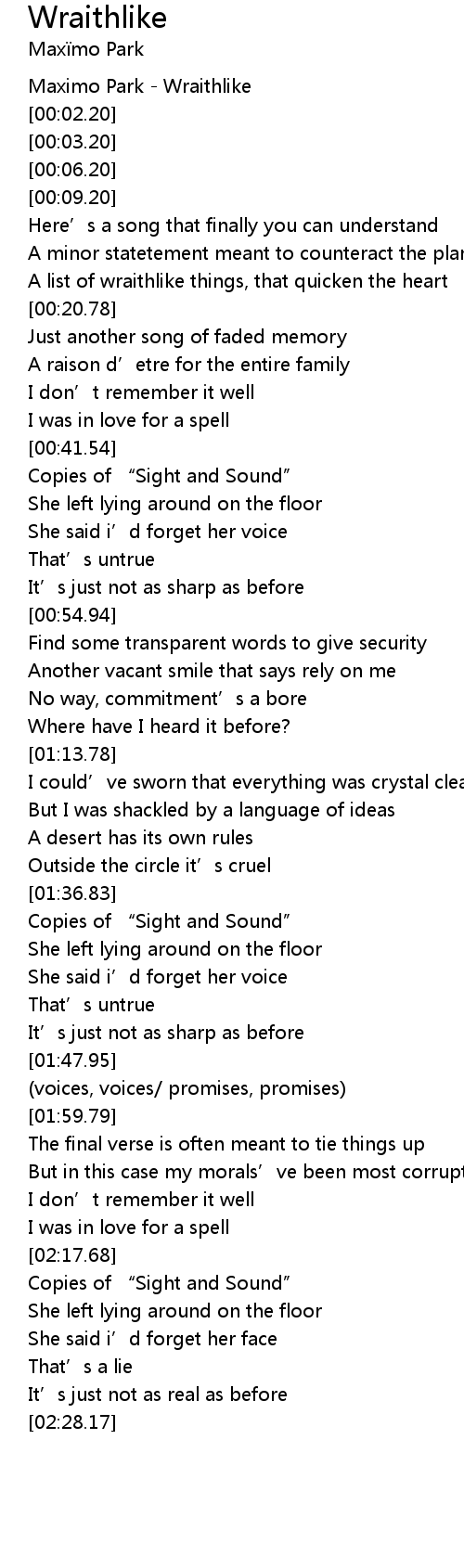 | [01:50.70] | (voices, voices/ promises, promises) |