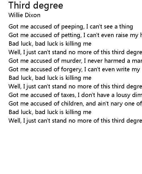 Well, I just can't stand no more of this third degree |